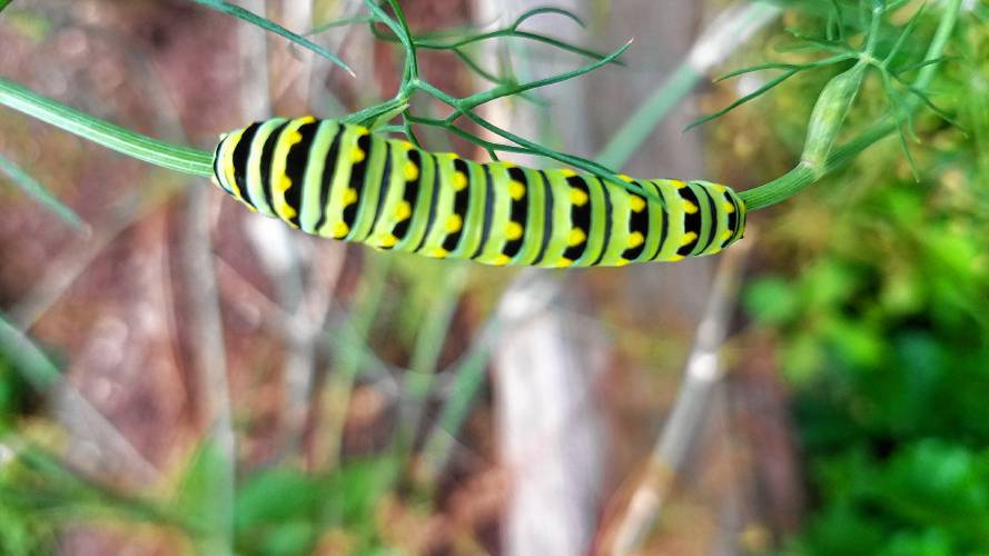 A caterpillar of the eastern black swallowtail butterfly (Papilio polyxenes). FOR THE GAZETTE/Katie Koerten