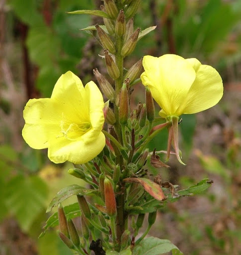Evening Primrose (La Onagra Vespertina) es una planta con flores amarillas que se abren durante la noche. Huelen a limón. Se las puede ver de Junio a Septiembre en el campo o a lo largo del camino. Tiene flores brillantes con cuatro pétalos redondeados que huelen a limón al mediodía.Los tallos son ásperos y peludos y miden entre dos a seis pies de altura.