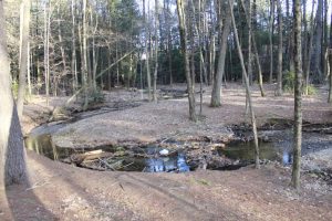 A famous local example of an oxbow formation is the Oxbow on the Connecticut River! See if you can spot the similar shape in this stream and on the Connecticut river. You can recognize this formation on rivers no matter their size! Do you think the oxbow will be cut off from the rest of the rive like we see in on the Connecticut river? How might this happen? Would the oxbow on this river form a lake like it did on the Connecticut river?
