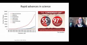 Conversations began with the foundational science of climate change with Dr. Michelle Staudinger. Her presentation was framed around 3 questions: