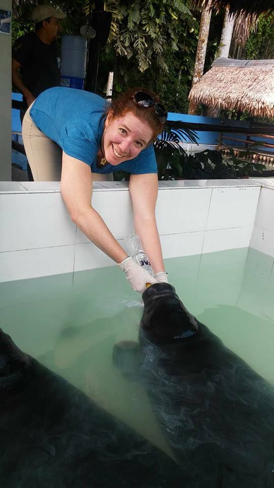 As a volunteer, Jessica was able to help feed a young Amazonian manatee.