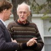 John Olver, Retired Member, United States House of Representatives talks with James Brassord, Chief of Campus Operations, Amherst College