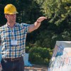 Mark Ledwell of Wright Builders and Sam Batchelor of designLab Architects discusses plan specifics with two subcontractors.