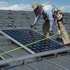 Adam Heintz of PV Squared helps him team install SunPower solar panels.