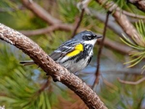 A yellow rumped warbler photographed during a local Hitchcock Center birding course led by photographer Scott Surner. Photo by Scott Surner