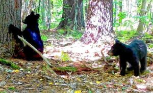 Two baby black bears frolic in front of a trail camera set up at Kestrel Land Trust’s Whately Center Woods Nature Retreat. COURTESY OF KESTREL LAND TRUST