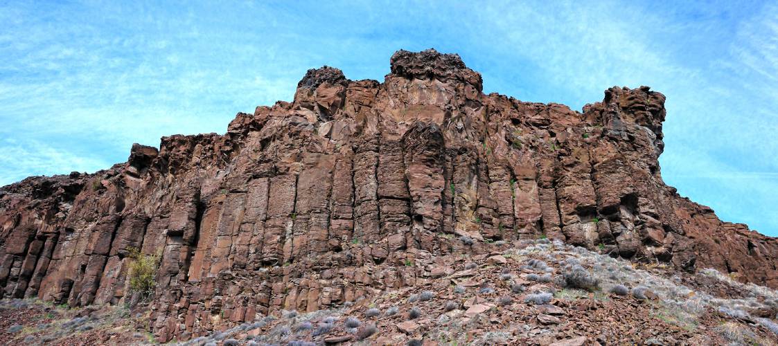 A basalt formation in eastern Washington state. Basalt dust applied to soils can take up carbon dioxide in rainwater and sequester the carbon as bicarbonate compounds. Flicker/RICHARD DROKER