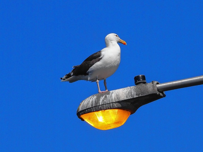 A great black-backed gull perched on street light is a common sight on bridges crossing the Connecticut River.