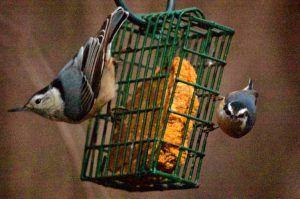 Don’t mind the occasional violence. Sometimes a hawk will notice the birds coming to your feeders, and do some feeding itself. But don’t worry: it won’t stay long. The hawk depends on wild food, so cannot hunt at one place indefinitely; surviving prey will notice and leave the area, forcing the hawk to relocate.