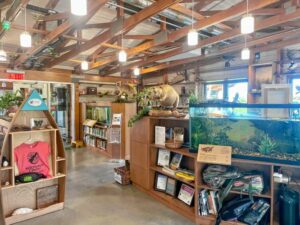 Inside the visitor’s center at The Hitchcock Center for the Environment, which was recently named a Fossil Free Zone by the Leave it in the Ground Initiative (LINGO). PHOTO BY MARGAUX PAINE