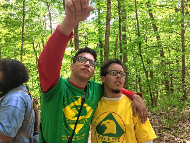 Jorge Jimenez, left, and Jorge Gonzalez, then both seniors at Holyoke High School’s Dean Campus, had the opportunity to enjoy the great outdoors last May at Eagle Eye Institute’s MountainStar Forest in Peru, up in the Berkshires, thanks to a collaboration between the Eagle Eye Institute and Kestrel Land Trust. Kestrel Land Trust