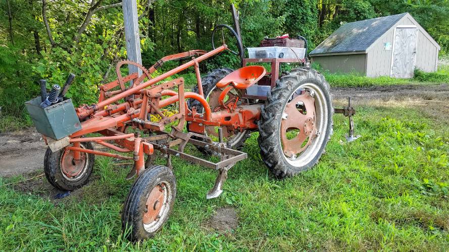 As part of creating a more resilient farm system, the Hampshire College Farm used funding from the National Science Foundation to convert this and one other 1950s Allis-Chalmers tractor from gasoline to solar-charged battery power. SUBMITTED PHOTO/Reeve Gutsell