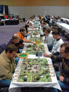 Devotees play in a “limited” format tournament of Dungeons & Dragons Miniatures, where figures are drawn from two fresh packs of miniatures, in January 2009. BENNY MAZUR/VIA WIKIMEDIA