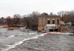This Thursday, Nov. 17, 2016 photo shows the decommissioned powerhouse for a hydroelectric dam on the St. Regis River in Hogansburg, N.Y. A century after the first commercial dam was built on the St. Regis River, blocking the spawning runs of salmon and sturgeon, the river once central to the traditional culture of the Mohawk Tribe along New York’s northern border is flowing freely again. (AP Photo/Mike Groll)