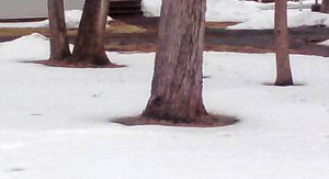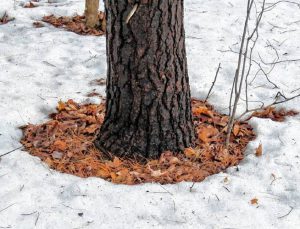 One of my favorite “snow puzzles” in the natural world concerns the bare rings of soil that form around the base of trees. Lawrence J. Winship photo