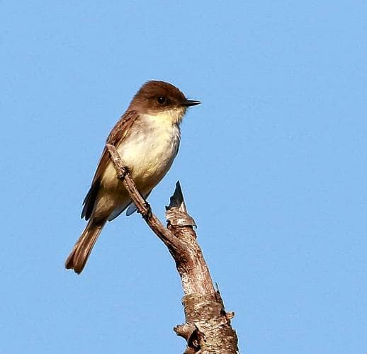 A December or January eastern phoebe (a flycatcher) is a rare find here, although the same individual would be commonplace in warmer months. Photo by Scott Surner