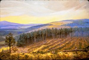 I began this series on environmental transformations in the Pioneer Valley in March, describing the land and its peoples before the English arrived in the mid-1600s and the effects of the influx of people, plants and animals that followed. In the second part, I left our readers at the height of deforestation around 1850. The few remaining great trees grew in inaccessible spots, the rest cut for potash, buildings, fences, heating and sundry other uses. The construction of railroads beginning in the mid-1840s placed further demand on forest resources. Williamsburg woodlands accounted for 11 percent of its land cover in 1841 but only 8 percent in 1860; Northampton’s forest cover was 25 percent in 1840 and 11 percent in 1860. Hold in your mind the image of bare, deeply eroded hillsides and limitless views.