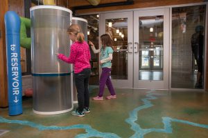 Children examine water tanks at the Hitchcock Center for the Environment, COURTESY HITCHCOCK CENTER/Jessica Schultz