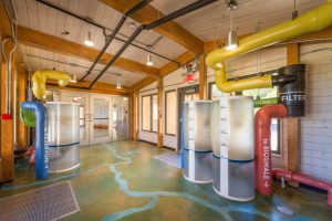 Its educational mission includes informing people how to use healthy materials in a building and how to conserve water. The compostable toilets are a specific focus for K-12 education, where students are also engaged in design challenges.