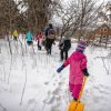 AMHERST – Participants in the “Jumping Mice” group, for kindergartners and first graders, hiked to what’s known as the “Squirrel Kitchen” to enjoy some nature play during the first day of the February vacation program at the Hitchcock Center on Monday.