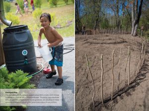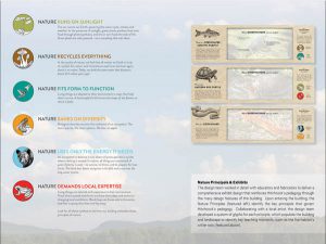 Water Systems: A pilot system engineered to capture and treat 100% of the building’s potable water on site includes a system of large, clear cylindrical tanks with color-coded piping exhibit the dynamic “first flush” step of rainwater collection. These collection and on-site treatment systems are monitored in real time on the building dashboard, an electronic touch-screen accessible to visitors, and are also accessible on the Hitchcock Center’s website. These systems not only prominently showcase opportunities for net-zero technologies to users, they also prove the viability of net-zero systems to regulatory agencies through their measurable outcomes and metrics.Building educational programs